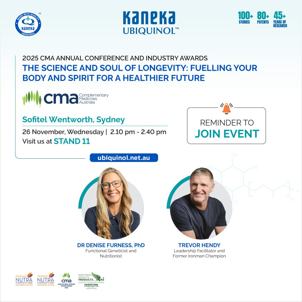 At this year’s Complementary Medicines Australia (CMA) Innovation Day, Kaneka Ubiquinol™ proudly sponsored a thought-provoking session with respected clinician, educator